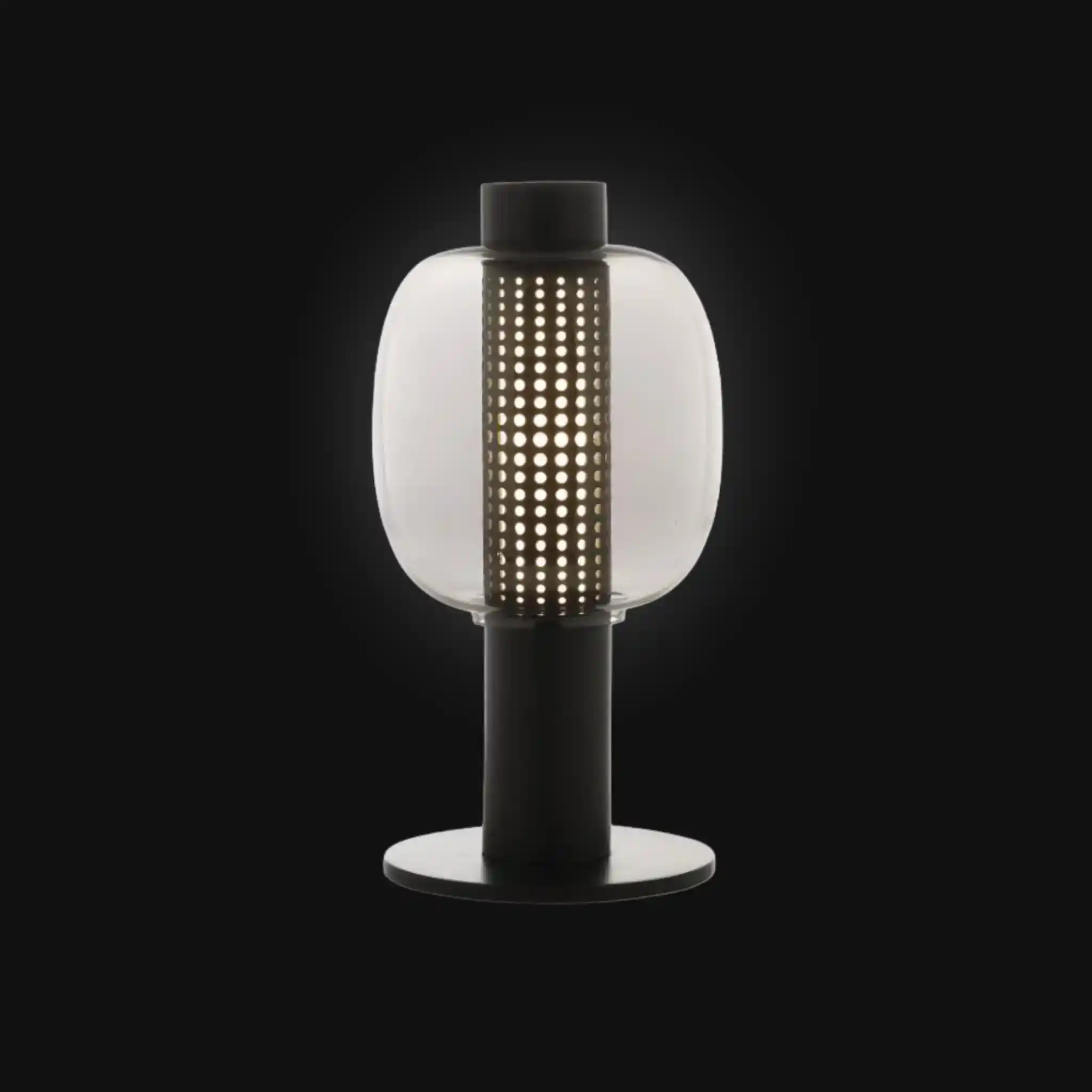 ✔ Modern design with a perforated metal core and smoky glass dome.
